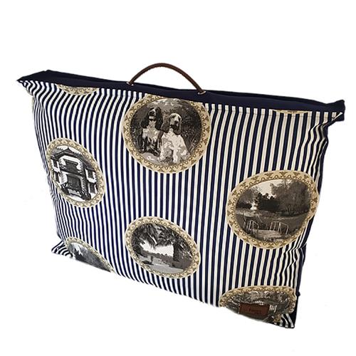 Almofada Maleta Fábrica Pet  Produto desenvolvida com alça para facilitar seu transporte, garantindo o conforto de seu Pet em qualquer lugar.  Tecido com uma estampa retrô trás charme ao produto.