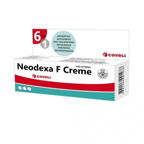 Neodexa F Creme é antibiótico, antifúngico, anti-inflamatório, antialérgico, anestésico e antipruginoso para tratamento de afecções dermatológicas de cães, gatos e equinos. Maior absorção, não mancha o pelo, maior eficácia antifúngica (nistatina).