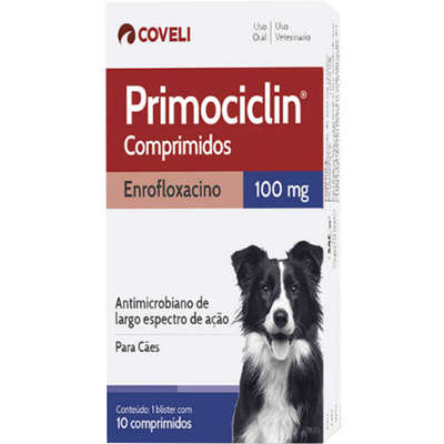 O Antimicrobiano Coveli Primociclin atua contra infecções dos cães e gatos causadas por bactérias Gram-negativas e Gram-positivas, espiroquetas e micoplasmas sensíveis ao enrofloxacino.