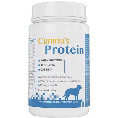 Suplemento Avert Caninus Protein, suplemento alimentar composto de carboidratos complexos, proteínas de alto valor biológico, Whey Protein, albumina, caseína, óleos vegetais, enriquecido com aminoácidos essenciais, BCAA`s (“Branch Chain Amino Acids” – aminoácidos de cadeia ramificada) leucina, isoleucina e valina, além de vitaminas e minerais quelatados, indicado para todos os cães que necessitam de um aporte nutricional. Produto balanceado, indicado para cães de qualquer porte ou raça, a partir do desmame.