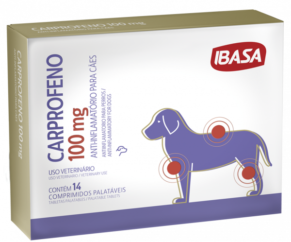 Cada comprimido de 100mg contém: Carprofeno -100,00mg – Excipiente q.s.p – 1200,00mg