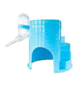 Multifunção, serve como ninho, dormitório ou esconderijo na parte de baixo, na lateral tem uma escadas estimulando a atividade física, no andar de cima encontra-se o comedouro para as refeições, além de tudo isso vem um bebedouro de plástico com bico de vidro fixado na parede do nicho.