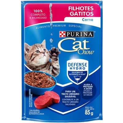 Carne bovina, fígado suíno, fígado de frango, carne mecanicamente separada de frango, carcaça de frango, glúten de trigo, proteína concentrada de soja, amido de milho, farinha de alga, fosfato bicálcico, carbonato de cálcio, cloreto de sódio (sal comum), cloreto de potássio, água, levedura enriquecida com selênio, taurina, vitaminas (A, D3, E, K3, B12, mononitrato de tiamina, suplemento de riboflavina, cloridrato de piridoxina, niacina, biotina, ácido fólico, pantotenato de cálcio, cloreto de colina), minerais (sulfato de zinco, proteinato de zinco, sulfato ferroso, sulfato de cobre, proteinato de cobre, sulfato de manganês, proteinato de manganês, iodato de cálcio, selenito de sódio), aroma de carne, corantes (óxido de ferro vermelho e caramelo).