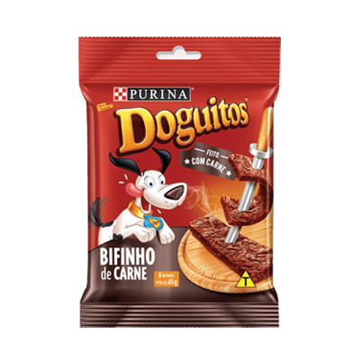 DOGUITOS® são petiscos inspirados nas mais deliciosas carnes, preparados especialmente para o seu cão.