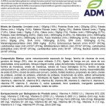 Composição Carne mecanicamente separada de frango, farinha de vísceras de aves, gordura de frango (9%), óleo de peixe refinado (1,2%), fígado de frango em pó, clara de ovo desidratada, arroz quebrado, linhaça integral moída, polpa de beterraba, levedura seca de cervejaria, farinha de mandioca, amido de mandioca, extrato de Yucca Schidigera (0,1%), farinha de alga schizochytrium sp, aditivo probiótico, mananoligossacarídeos, DL-Metionina, inulina, hexametafosfato de sódio (0,03%), cloreto de sódio (sal comum), zeólita, fosfato bicálcico, propionato de cálcio, cloreto de potássio, sorbato de potássio, eritorbato de potássio, bicarbonato de sódio, aditivo antioxidante (tocoferol e essência de alecrim), hidrolisado de fígado de frango, ácido fólico, ácido pantotênico, vitamina A, vitamina B1, vitamina B12, vitamina B2, vitamina B6, vitamina D, vitamina H, vitamina K, vitamina PP, vitamina E, vitamina C, cobre quelatado, ferro quelatado, manganês quelatado, proteinato de selênio, zinco quelatado, iodato de cálcio.