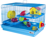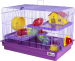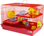Armação, 2 andares em plástico, 1 comedouro, 1 rodinha plástica, 1 casinha, 1 bandeja grande, kit tubos (7 curvas, 6 anéis e 1 tampa), 6 presilhas plásticas, 2 placas fixação de tubos e 1 bebedouro