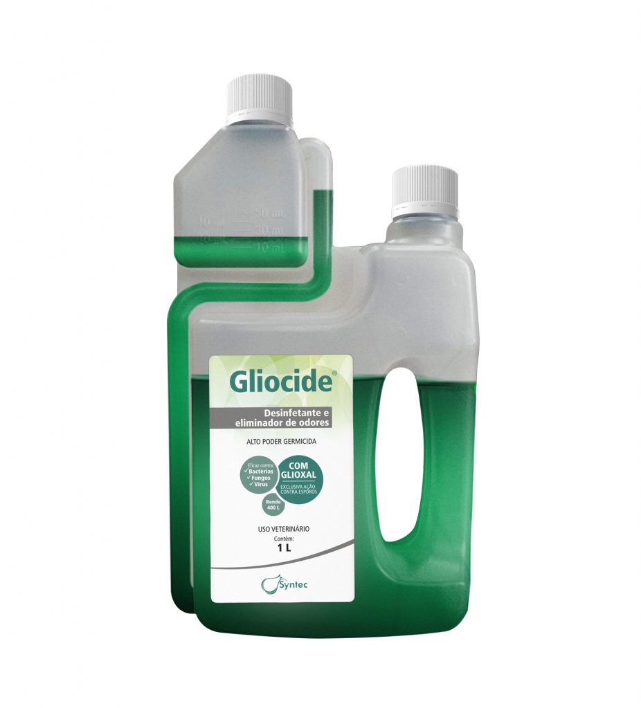 Gliocide em solução concentrada pode ser irritante para peles e mucosas. Ao manipular o produto, use luvas impermeáveis e evite o contato do mesmo com os olhos, pele e roupas. Havendo contato, lavar com água corrente e procurar orientação médica, levando consigo a embalagem do produto. Em caso de ingestão acidental, procurar atendimento médico imediatamente. O contato direto dos animais com o produto concentrado pode causar intoxicação e irritação de pele aos mesmos, principalmente em gatos. Os sintomas em caso de ingestão são náuseas, vômitos, insônia, fraqueza, dispnéia, convulsões e coma. Em caso de ingestão acidental procurar imediatamente o Médico Veterinário. Somente para o uso em instalações e utensílios. Não aplicar o produto ou a solução desinfetante nos animais. – Não usar o produto em presença de sabões e outros detergentes aniônicos e nitratos, pois estes podem diminuir sua eficácia. – Não reutilizar a embalagem vazia. Descartá-la de forma segura, evitando contaminar o meio ambiente. – Produto tóxico para organismos aquáticos. Não descartar a embalagem ou restos de produto em mananciais de água.
