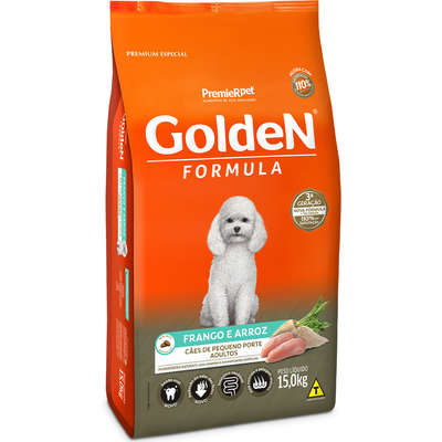 ‘-Golden Formula Adultos Frango & Arroz Mini Bits é um alimento Premium Especial desenvolvido para cães adultos de pequeno porte.