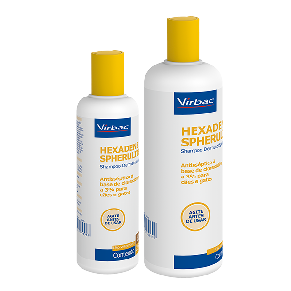 Após molhar o pelame do animal com água, aplicar Hexadene Spherulites® espalhando-o por todo o corpo. Massagear até formar espuma.