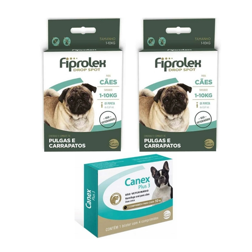 Kit Fiprolex Antipulgas Cães Até 10Kg E Vermífugo Canex Plus