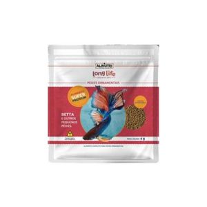 Long Life Pequenos Pets Betta é um alimento completo extrusado de alta absorção para peixes tropicais de aquário, tais como: Bettas, Lebiste, Neon, Acará e demais peixes de pequeno porte. Alimento rico em carotenoides naturais, vitaminas, prebióticos e probióticos, proporcionando maior resistência e longevidade para os peixes.