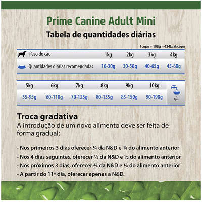 Carne de cordeiro, farinha de carne e ossos de ovino (mín. 3%), farinha de vísceras de aves, ovo desidratado, farinha de peixe, farinha de torresmo (proteína isolada de suíno), amido de batata, amido de mandioca, óleo de peixe, óleo de frango, polpa de beterraba, casca de ervilha, alfafa desidratada, lignocelulose, semente de psyllium, levedura seca de cervejaria, cenoura desidratada, espinafre desidratado, laranja desidratada, maçã desidratada, blueberry desidratado (mín. 0,075%), extrato de romã, extrato de chá verde, extrato de aloe vera, cúrcuma em pó, beta caroteno, luteína, aditivos prebióticos (FOS e MOS), DL-metionina, taurina, L-carnitina, sulfato de condroitina, sulfato de glicosamina, extrato de yucca, zeolita, hidrolisado de fígado de frango e suíno, vitaminas (A, D3, E, B1, B2, B6, B12, C, biotina, niacina, ácido pantotênico, ácido fólico, cloreto de colina), cloreto de potássio, fosfato bicálcico, ferro aminoácido quelato, cobre aminoácido quelato, zinco aminoácido quelato, manganês aminoácido quelato, proteinato de selênio, iodato de cálcio, propionato de cálcio, concentrado de tocoferóis. Eventual substitutivo: proteína hidrolisada de peixe. |