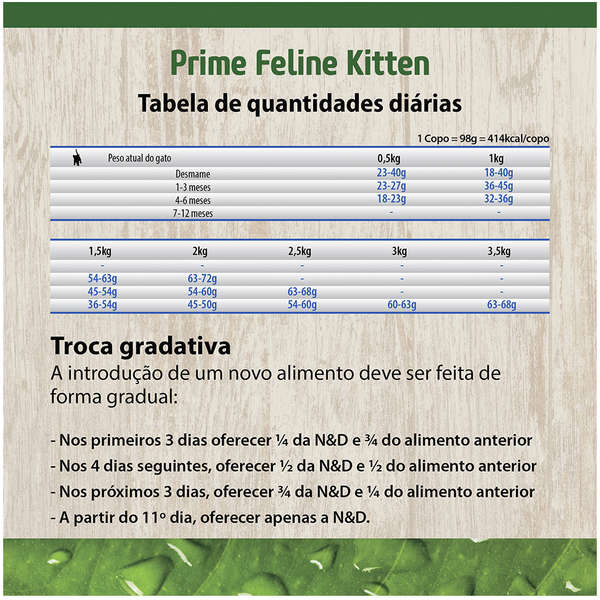 A Ração Farmina N&D Prime Frango e Romã Gatos Filhotes é uma receita italiana, elaborada com carnes de frango de altíssima qualidade, conservantes naturais, livre de cereais, portanto não contém ingredientes transgênico. Um alimento saudável que respeita a natureza alimentar do seu amiguinho.
