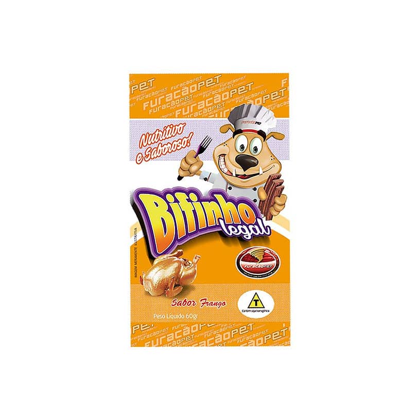 Bifinho da Furacão Pet é um delicioso snack nutritivo e saboroso. Processado a base de carnes frescas e com ingredientes selecionados. Vai divertir e alegrar o seu pet, pode ser usado como recompensa e ajudar a reforçar suas atitudes positivas. Não deve ser usado como a principal fonte de alimentação. Diversos sabores.