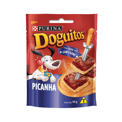 Carne de aves (45%), carne bovina (9%), pulmões, proteína texturizada de soja*, cloreto de sódio (sal comum), açúcar, propilenoglicol, aditivos aromatizantes, glutamato monossódico, sorbato de potássio, corantes (amarelo 5, vermelho 40 e dióxido de titânio), antioxidante BHT, nitrito de sódio. *Espécies doadoras do gene: Agrobacterium tumefaciens, Bacillus thuringiensis e Streptomyces viridochromogenes.