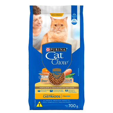 Uma xícara de chá padrão de 200 ml contém aproximadamente 90g de PURINA® CAT CHOW® Castrados Frango. As mudanças na alimentação do seu gato devem ser feitas gradualmente durante um período de 7 a 10 dias. Substitua pequenas quantidades de alimento até que o seu gato coma exclusivamente PURINA® CAT CHOW® Castrados Frango.