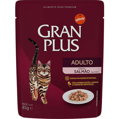 Farinha de Salmão (mín. 4%), Carne Mecanicamente Separada de Frango, Fígado Suíno, Fígado de Aves, Farinha de Proteína Isolada de Suíno (Farinha de Torresmo), Plasma Suíno em Pó, Farinha de Trigo, Celulose, Água, Cloreto de Sódio, Carbonato de Cálcio, Cloreto de Potássio, Amido Modificado, Goma Xantana, Corante Natural Caramelo, Taurina, Metionina, Palatabilizante, Vitaminas (A, D3, E, C, K, B1, B2, B6, B12, Ácido Pantotênico, Ácido Fólico, Niacina, Biotina, Cloreto de Colina), Minerais (Sulfato de Zinco, Sulfato Ferroso, Cobre Quelatado, Sulfato de Manganês, Iodato de Cálcio, Selenito de Sódio). Eventuais substitutivos: Aparas de Salmão, Miúdos de Aves, Miúdos Suínos, Gordura Animal, Tripolifosfato de Sódio, Óleo Vegetal.