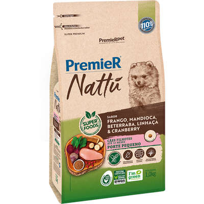 Farinha de vísceras de frango (25%), ovo desidratado – proveniente de galinhas livres de gaiolas (0,5%), glúten de milho – não transgênico, quirera de arroz, gordura de frango, óleo de peixe, complexo de vegetais -10,0% (polpa de beterraba, farinha de mandioca branca, beterraba desidratada, semente de linhaça, extrato de arando (cranberry desidratada) e extrato de Marigold), antioxidantes BHA e BHT (0,012%), bentonita, β-glucano, L-carnitina, cloreto de sódio, cloreto de potássio, extrato de yucca, hidrolisado de suíno e frango, levedura autolisada de cana-de-açúcar, mananoligossacarídeos (0,2%), metionina, taurina, vitamina A, vitamina B12, vitamina C, vitamina D3, vitamina E, vitamina K3, ácido fólico, ácido pantotênico, biotina, cloreto de colina, niacina, piridoxina, riboflavina, tiamina, cobre aminoácido quelato, ferro aminoácido quelato, iodeto de potássio, manganês aminoácido quelato, selênio metionina, sulfato de cobre, sulfato de ferro, sulfato de manganês, sulfato de zinco, zinco aminoácido quelato.