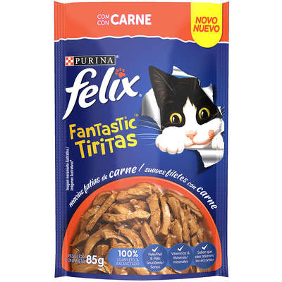 Gatos adultos necessitam de aproximadamente 0,75 a 1 unidade de 85g para 1 kg de peso corporal, dividida em pelo menos duas refeições ao dia. Ajuste a quantidade para manter uma condição corporal ideal e evitar o excesso de peso. Quando oferecido com alimento seco, cada unidade de Felix® equivale a 20 g (1/4 de xícara de 200 ml) de Cat Chow® adulto seco. As mudanças na alimentação do seu gato devem ser feitas gradualmente durante um período de 7 a 10 dias.
