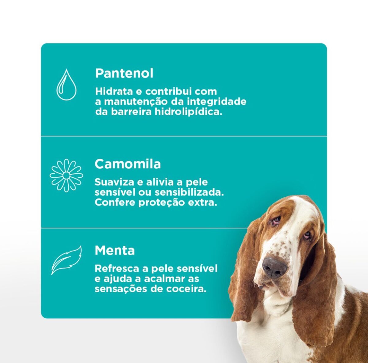 Refresca a pele sensível e ajuda a acalmar as sensações de coceira.